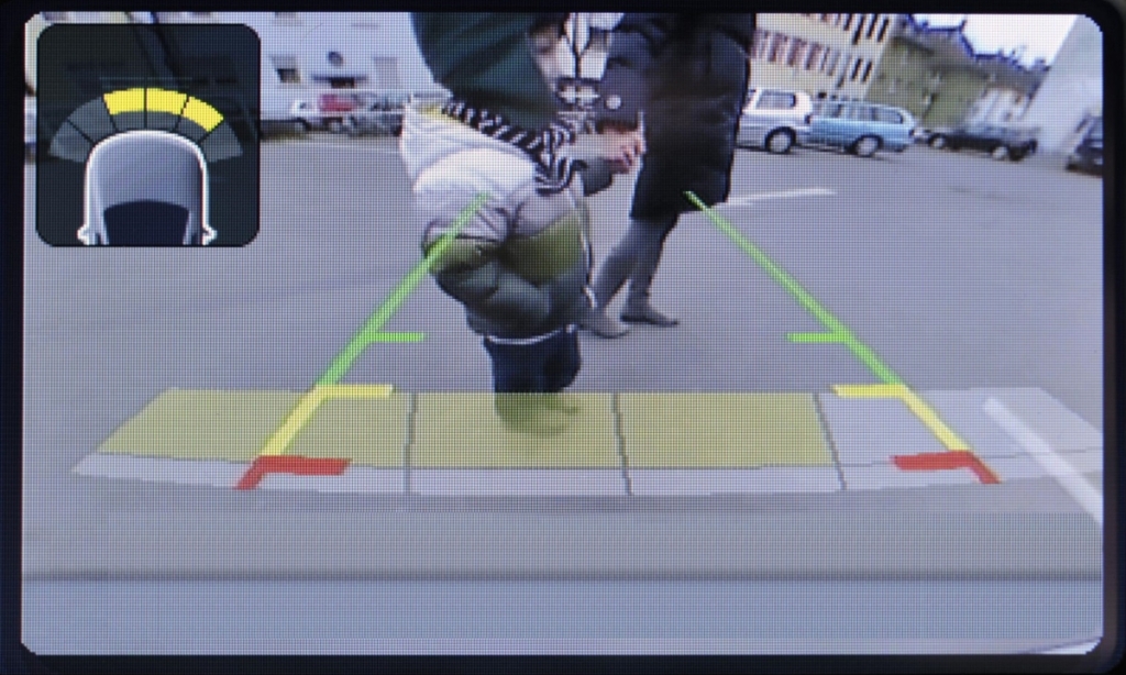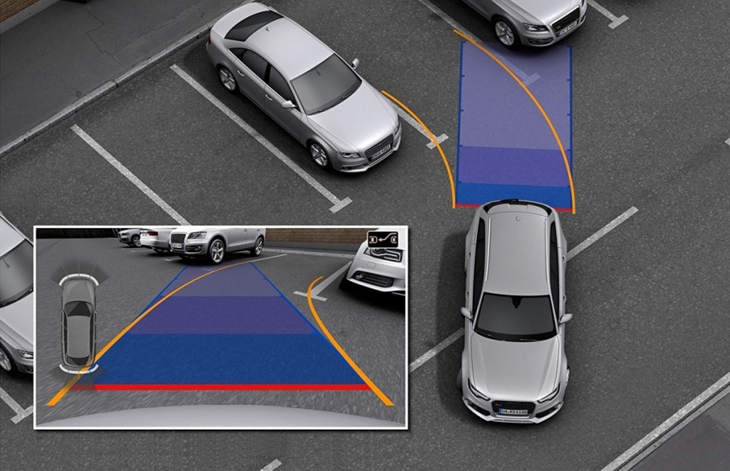 دوربینی که در قسمت پشتی خودرو نصب شده است، به محض اینکه خودرو در حالت دنده عقب قرار بگیرد، به صورت اتوماتیک فعال می شود. تصاویر دوربین محدوده ی پشتی خودرو را نشان داده و به راننده اجازه می دهند تا به صورت آنی تعیین کند که مسیر باز است. به طور اختیاری، مسیر خودرو می تواند به صورت پویا روی تصاویر دوربین با کمک خطوط رنگی نمایش داده شود. این ها خط سیر خودرو را با توجه به زاویه کنونی فرمان نشان می دهند و مشخص می کنند که در چه زمانی چرخش فرمان باید انجام شود.