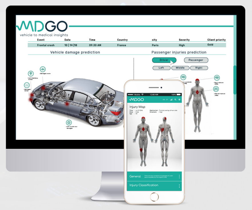 سیستم تجزیه و تحلیل هوشمند آسیب MDGo از یک الگوریتم پیچیده ی هوش مصنوعی برای ارزیابی سطح خصوصیات تعریف شده در مسافران به صورت آنی استفاده می کند و در هنگام نیاز، به سرویس های اورژانس و مراکز خدمات درمانی هشداری ارسال می کند.